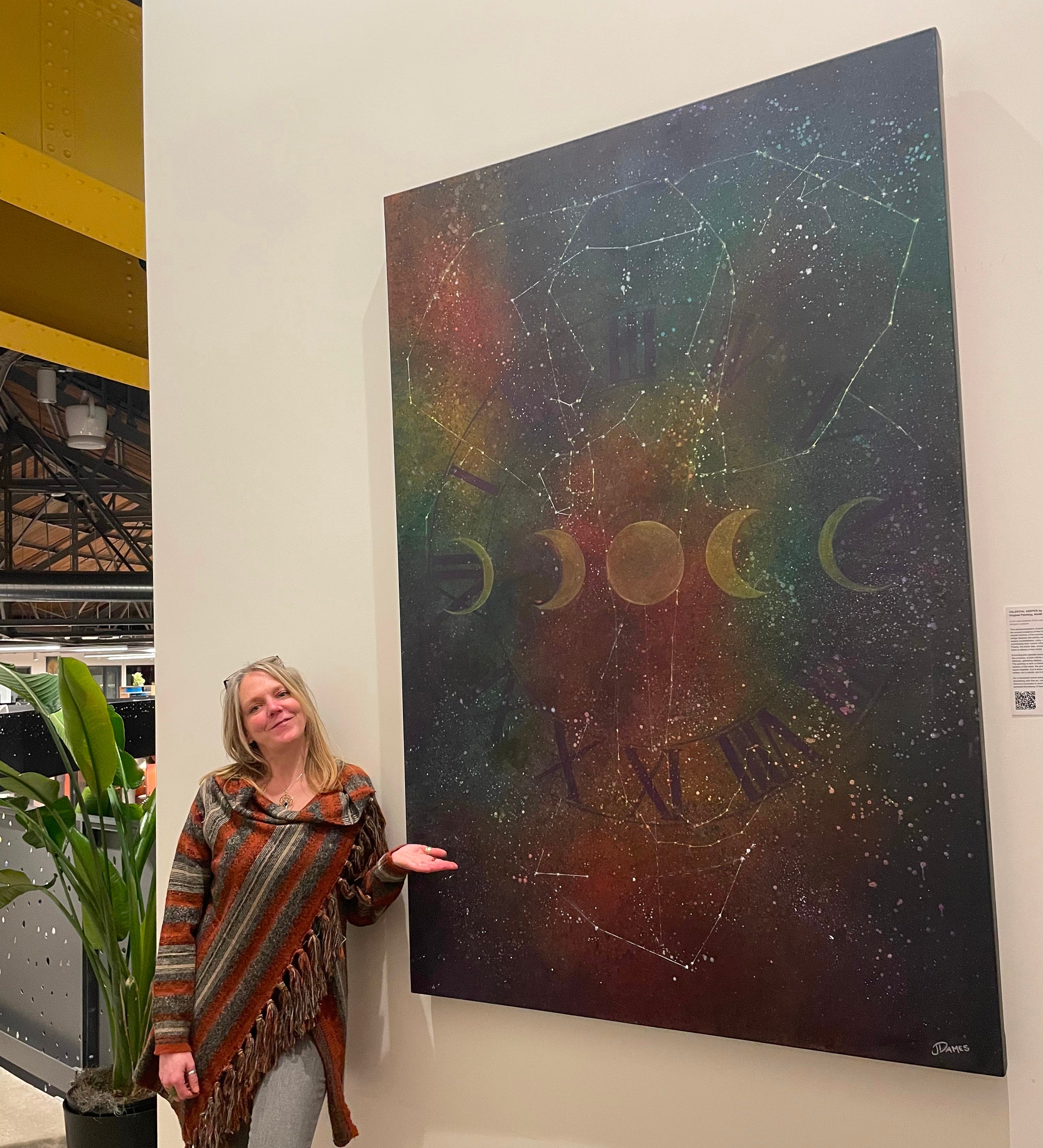 At the end of my exhibit were my newer paintings, the ones with my voice in them. After looking at the last piece, The Celestial Keeper, someone asked if I felt like I was channeling something from the other side when I painted.