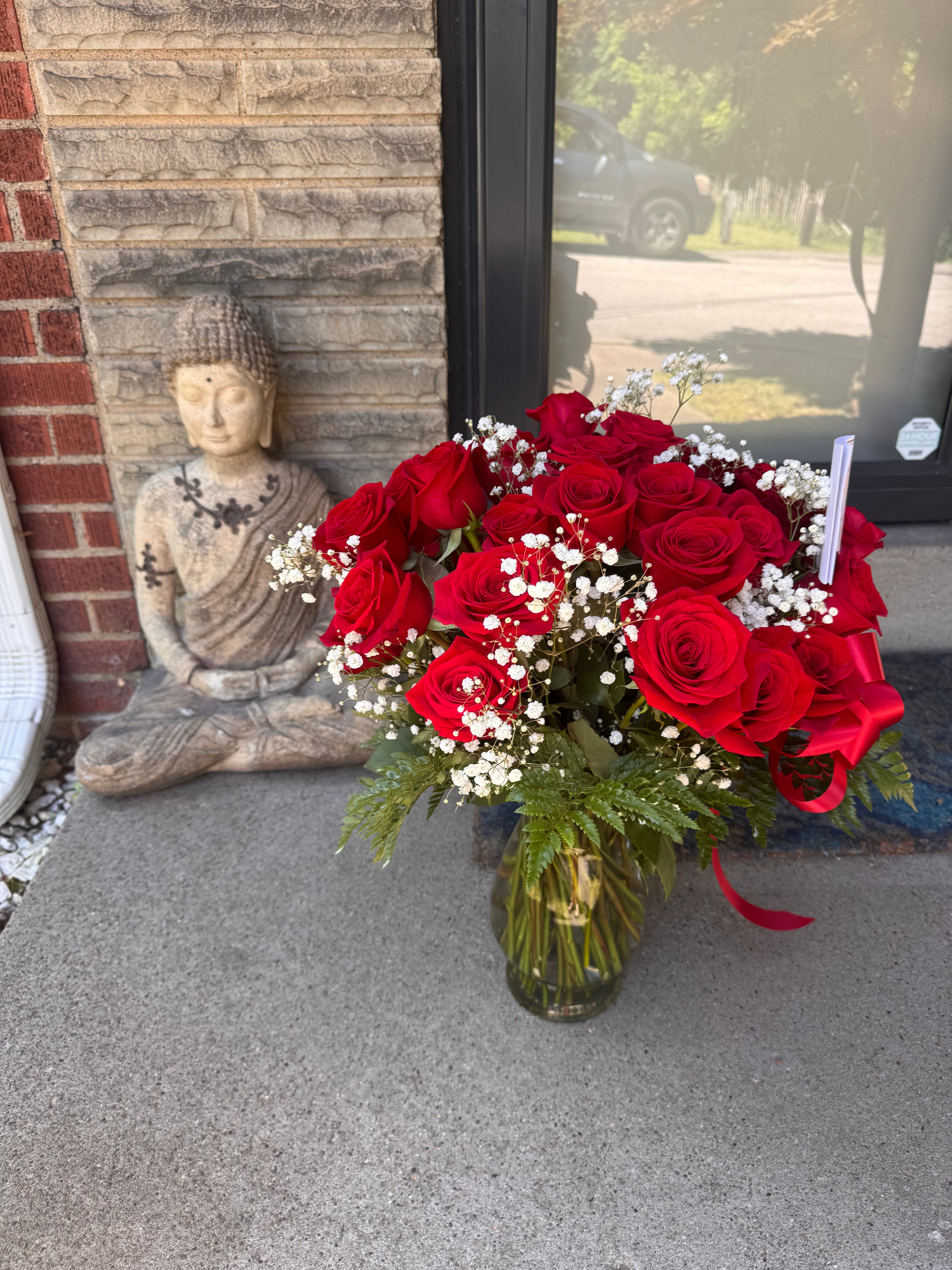 My phone rang. Bonus, I have cell service here if the Mothman shows up I can call for help. A phone number I didn’t recognize. I waited and listened to the voicemail. A frantic man delivering what he said was “ton of red roses” on my doorstep. “I’ll send you a picture, let me know if you got these. I don’t want anyone to steal them.”