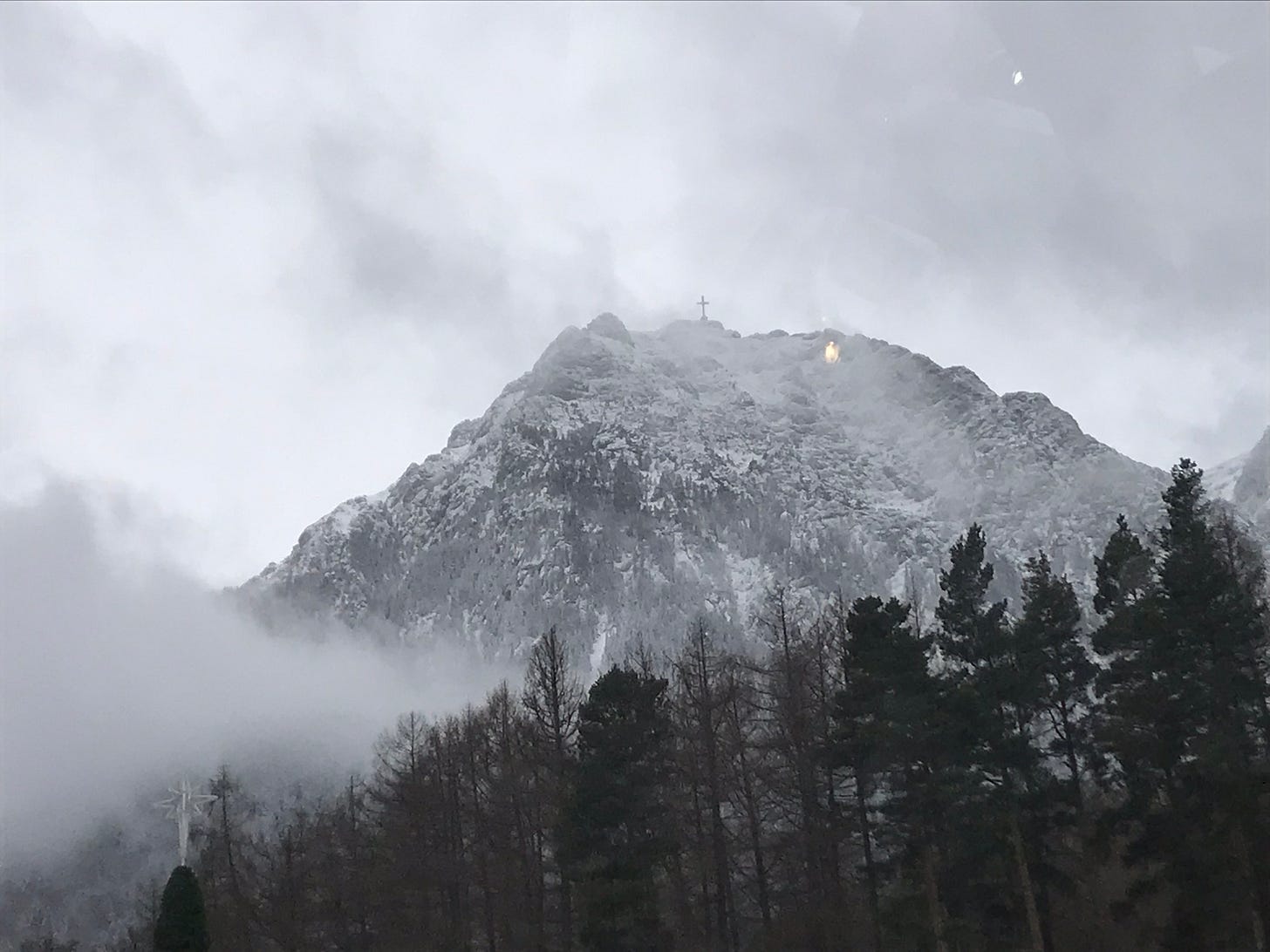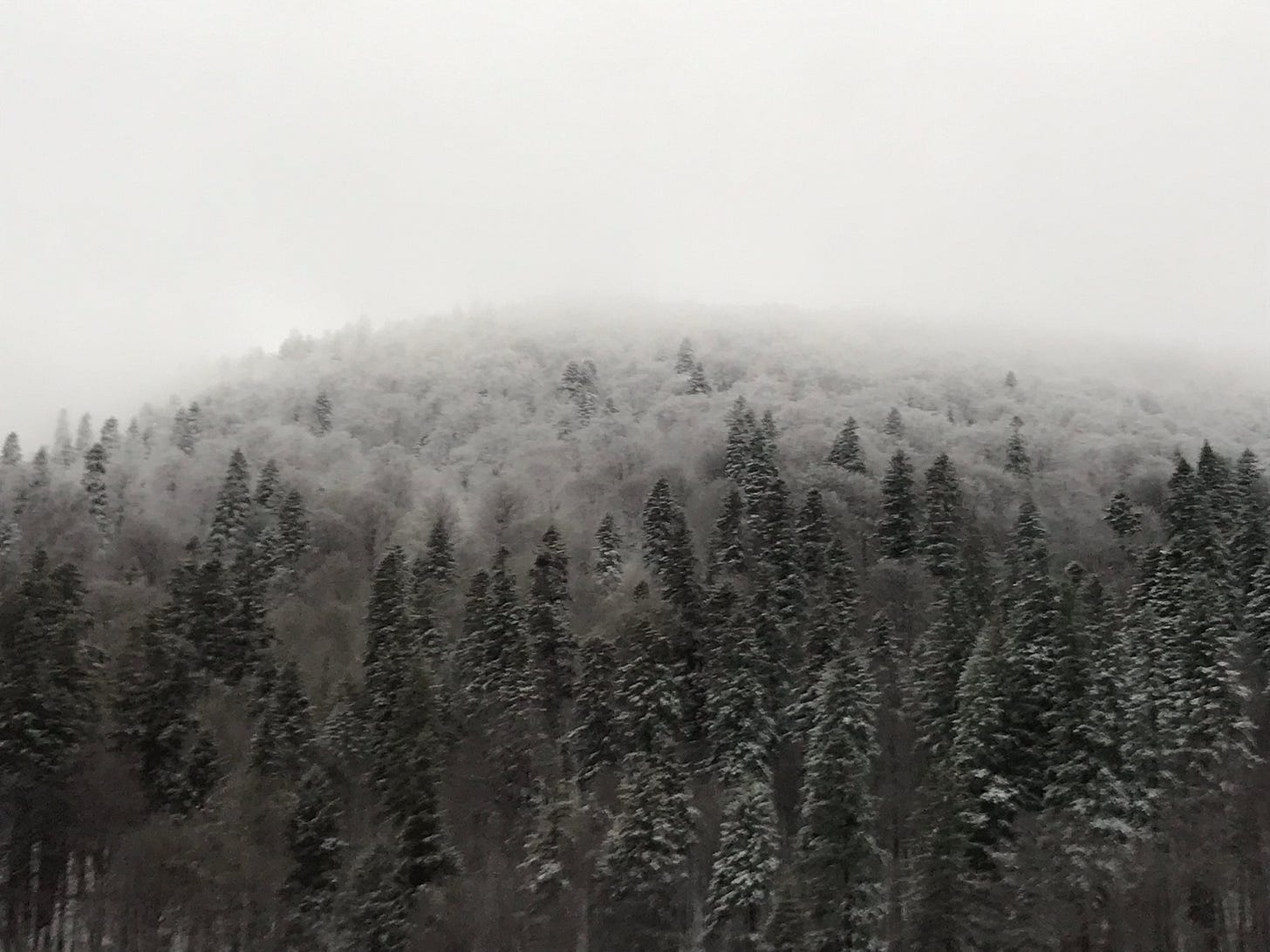 We pull into the station of a small town. The railings are green. The hanging pots are red. Everything is covered in snow. There are five people on the platform. We are paused now, nestled inside the Carpathian Mountains. Snow falls lightly, and it looks like a fairytale land. It feels like a fairytale land.