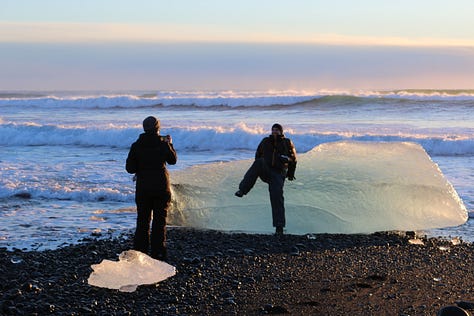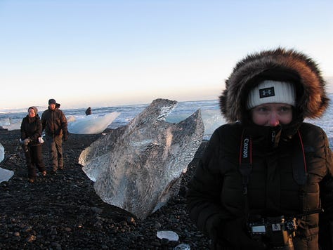 Tours we’d booked were canceled, and even the Airbnbs we’d reserved called to let us know the roads were closed, forcing us to reroute and improvise. Instead of rushing to make it from one stop to the next, we slowed down and decided to just enjoy whatever the island offered. One of those detours led us to an unbelievable beach scattered with ice chunks bigger than people. I swear, the photos I took there are some of my favorites I’ve ever captured—no filters, no edits, nothing. That’s exactly how it looked. Iceland doesn’t need help being dramatic.