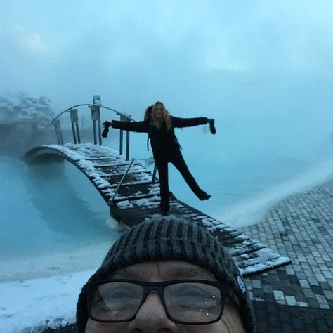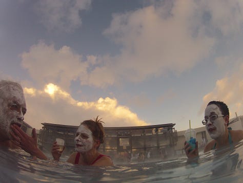 And of course, we did the Blue Lagoon—because how do you go to Iceland and not float around in a giant bowl of steaming, electric-blue geothermal soup? It’s the kind of place that looks Photoshopped in real life: milky turquoise water surrounded by black lava rock, steam rising like the earth is exhaling. Everyone waddles around covered in silica mud like glowing swamp creatures, and honestly, it’s fabulous. It was the perfect, surreal pause in the middle of all the storms and detours—a reminder that even when the weather shuts everything down, Iceland still hands you magic on a silver platter.