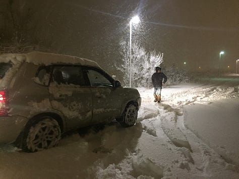 A storm, a skeleton snowman, and a reminder that detours are divine.