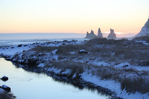 In movie world we have what is called “magic hour” or “golden hour”. It’s a window of time during sunrise or sunset which only lasts about 20-40 minutes depending. It’s that fleeting slice of time when the light turns cinematic and everything glows—but in Iceland in November, the sun barely lifts itself into the sky, daylight becomes this short, sideways shimmer that never quite commits to being day. It’s soft, low, golden, moody—the kind of light filmmakers would sell their souls for. In most places, you chase the magic hour. In Iceland in winter, it just follows you everywhere you go.