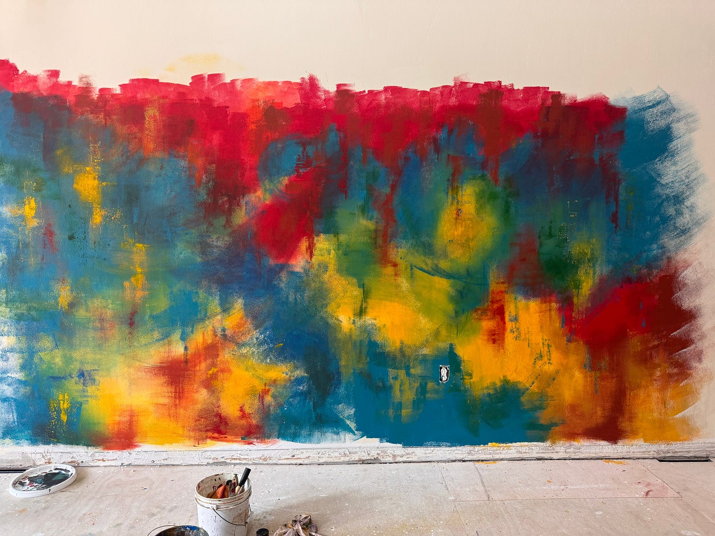 The mural was abstract—something I don’t typically do at this scale or in this way. My usual approach is structured: a photograph, a rendering, a clear translation from small to large. Precision. Control. Planning. That’s how I’ve survived decades in the film and television industry—by knowing how to reverse-engineer an image and execute it efficiently under pressure. I was made for that.